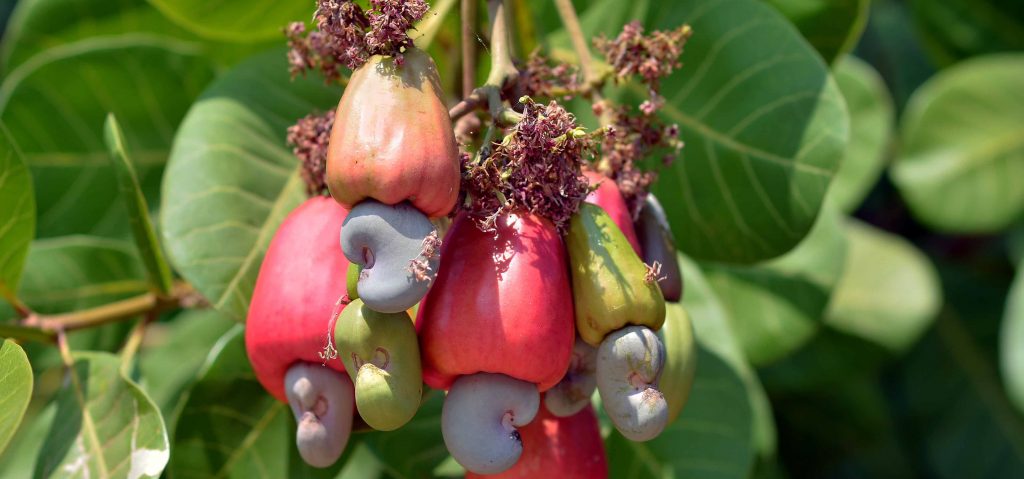 The cashew tree is native to Brazil’s Amazon rain forest. It spread all over the planet by Portuguese explorers and today, it is cultivated at commercial scale in Brazil, Vietnam, India and in many African countries.